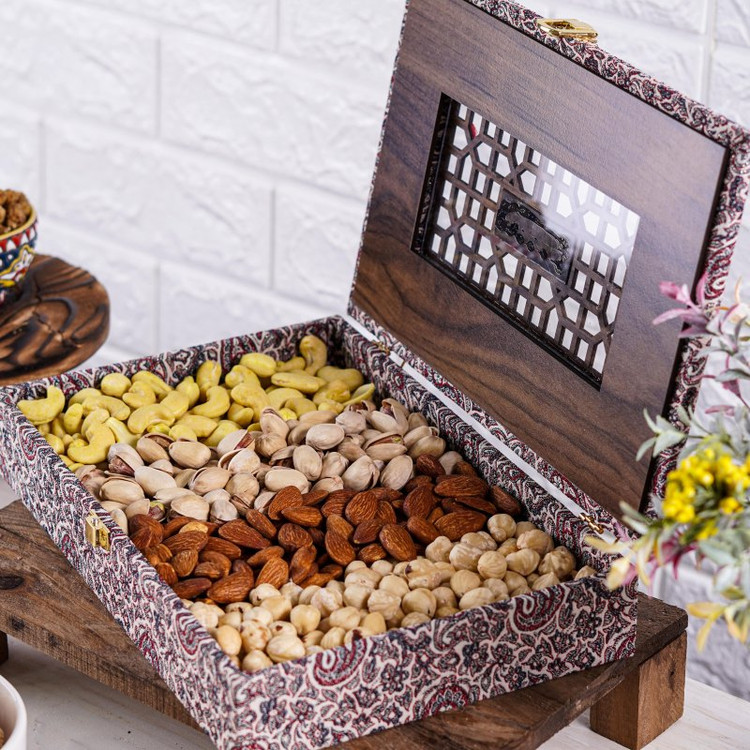 باکس هدیه آجیل الیکا با محتویات آجیل 4 مغز مخلوط به وزن 1کیلوگرم
